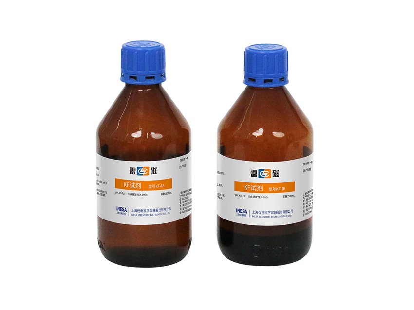 容量法卡尔费休试剂, 含KF-4A试剂(500mL)1瓶, KF-4B试剂(500mL)1瓶, 滴定度: 3-5mg/L。
